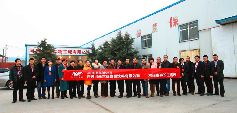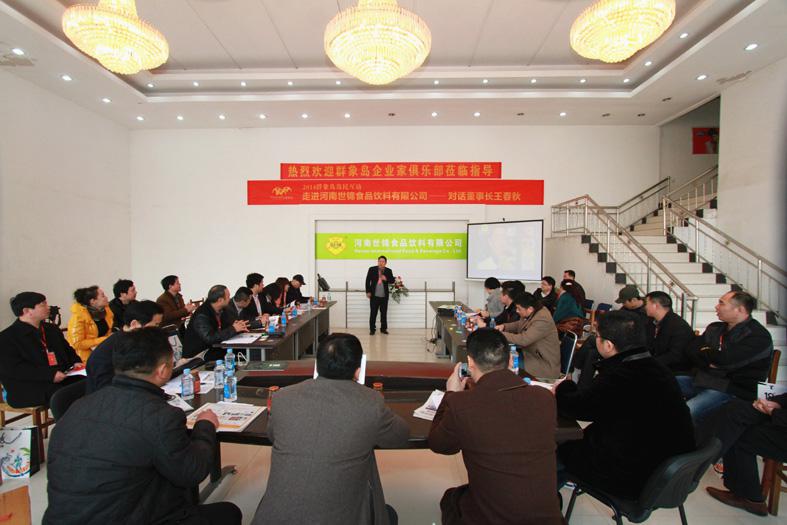 2014年2月21日,中寰創(chuàng)世(鄭州)營銷策劃公司董事長胡志輝等企業(yè)家代表走進河南世錦食品飲料有限公司。胡志輝先生與來自群象島企業(yè)家俱樂部的20余位島民企業(yè)家駕抵河南世錦食品飲料有限公司中牟縣生產(chǎn)廠區(qū),參觀現(xiàn)代化生產(chǎn)車間,對話河南世錦食品飲料有限公司董事長王春秋,一同解讀河南本土品牌“早滋潤”的藍海定位策略。