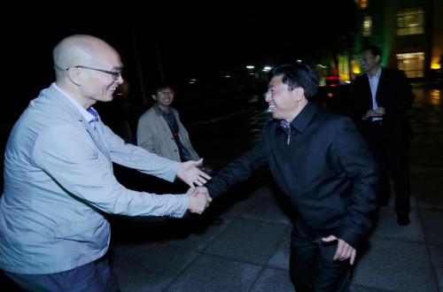 25日晚,羚銳集團董事長熊維政迎接群象島探營團