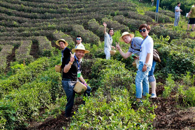 不僅僅是清新淡泊,與之毗鄰的佛靈山萬畝茶園亦為這片土地增添了靈氣。夏日的燥熱點燃了眾人的激情,茶圣堂前,大家眺望茶山、森林、竹海,對看得見的原生態贊不絕口。隨后,眾人披掛上陣,登山采茶,體驗茶農艱辛,對茶產業有了更深刻的認識。