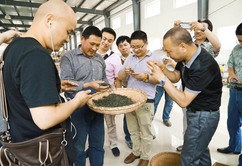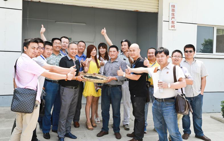 6月7日上午,群象島一行參觀了佛靈山陸廟茶園基地和占地20000平方米的標準化廠房。在生產車間內,先進的毛尖生產機械設備和檢測系統,無聲地印證了佛靈山品牌60萬公斤年產量的實力。