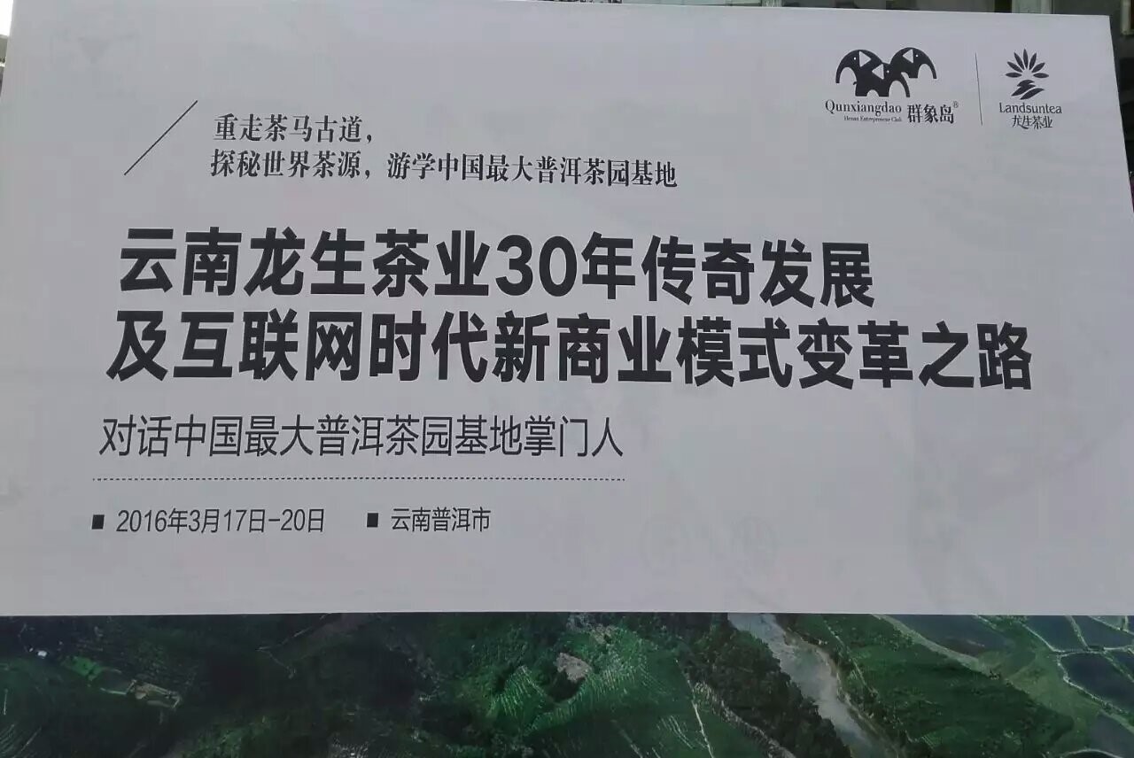 繼2015年10月份第一次組團游學云南龍生普洱之后,2016年3月17—20日,春暖花開之季,迎來了群象島2016開春第一場游學。36位群象島島民及其他豫企掌門人在群象島創始人路明先生的帶領下,第二次共赴“彩云之南”,來到茶馬古道起源點的普洱,一起探營中國最大的普洱茶生產基地——云南龍生茶業股份有限公司,開啟了一場為期四天三夜、主題為“云南龍生茶業30年傳奇發展及互聯網時代新商業模式變革之路”的“有生意,有生活;有意義,有意思”的游學之旅。中寰創世(鄭州)營銷策劃公司董事長胡志輝先生擔任全程特邀嘉賓主持。