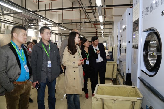 互訪團一行首先參觀了艾施總部及自助門店,實地體驗了衣物送取流程。通過一個像ATM機一樣的柜機,便能實現手機號、會員卡、現金或銀聯支付,顛覆傳統模式、沖擊傳統價格、挑戰傳統服務,同時還能滿足72小時存取,24小時全天候服務。眼前的艾施洗衣工廠,讓參訪嘉賓嘆為觀止。