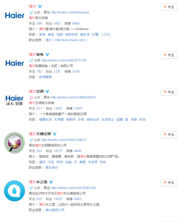 海爾新媒體團隊總共維護了整個集團的200多個微信賬號和100多個微博賬號。現在新媒體的發展趨勢就是,團隊作戰,打造多個賬號,形成矩陣。