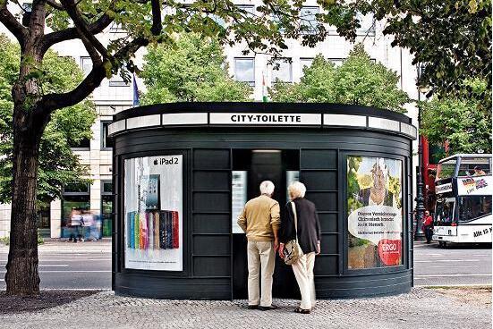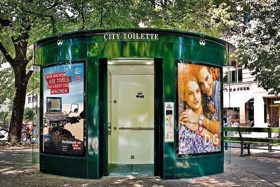在歐洲每次上公廁,都要放下一歐半歐元才能使用,不過即使向用戶收費,政府要營運分散城市各處的公廁,收入隨時抵不上開支。1990 年德國柏林市對外拍賣柏林公共廁所時, Hans Wall 拿下了這個生意,并承諾免費向社會提供公共廁所。