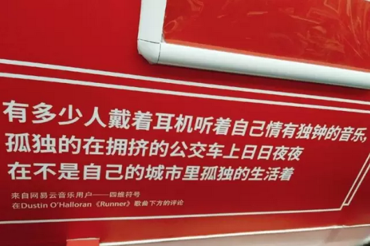 今年3月,網易云樂評地鐵專列一度刷爆朋友圈,網易云音樂把一度深深打動我們的那些歌曲評論,印滿了杭州地鐵1號線和整個江陵路地鐵站。它們來自網易云音樂點贊數最高的5000條優質樂評之中,經過層層篩選,最終映入乘客眼簾,用音樂故事填滿1號線之旅。