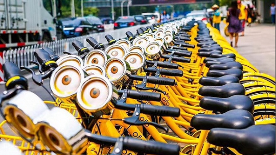 《神偷奶爸3》上映前夕,美國環(huán)球影業(yè)與當(dāng)下最火的共享單車小黃車ofo合作推出了新款“大眼小黃車”,車頭兩只圓圓的大眼睛十分醒目,車輪上裝飾著小黃人的可愛圖案,小黃人版“大眼車”一經(jīng)推出迅速占領(lǐng)街頭,引起熱議。