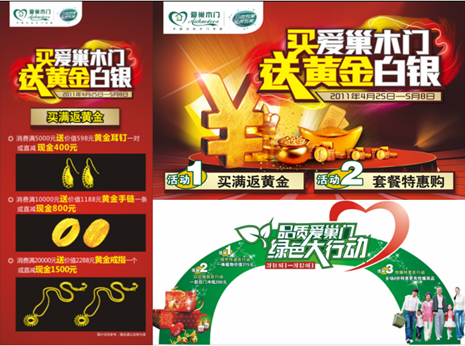 以“國慶節、中秋節”為契機,通過策劃系列促銷活動,著重突出“愛巢木門——潛心專注白色木門十年‖中國白色木門領軍品牌”明晰的品牌定位,進一步宣傳企業的整體形象,提高企業知名度和美譽度;通過連環促銷方式,最大限度的提升人氣,吸引消費者,提高銷售業績。