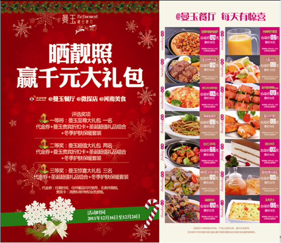 曼玉融合餐廳互動營銷是中寰創世在新媒體營銷研究的基礎上首次實戰的網絡低成本傳播的標桿案例,最終得到客戶的高度滿意。中寰創世在2010年底在河南地區開始研究并為部分企業提供互動營銷服務,此次在為曼玉餐廳的策劃中大范圍采用了互動營銷創意。12月2日媒體品鑒團、12月3日微博開業觀禮團、12月3日與“蘿卜哥”韓紅剛簽定蔬菜定向種植采購合同并支付定金,得到了人民日報、河南日報、大河報、河南商報、鄭州晚報、東方今報、大河網、河南電視臺等眾多媒體跟蹤報道,成為愛心企業的代表。隨后又陸續推出了新浪品鑒團、免費的午餐等等微博互動營銷。讓曼玉餐廳從開業伊始一直顧客盈門、好評如潮,成為鄭州地區利用網絡低成本營銷的企業標桿案例。